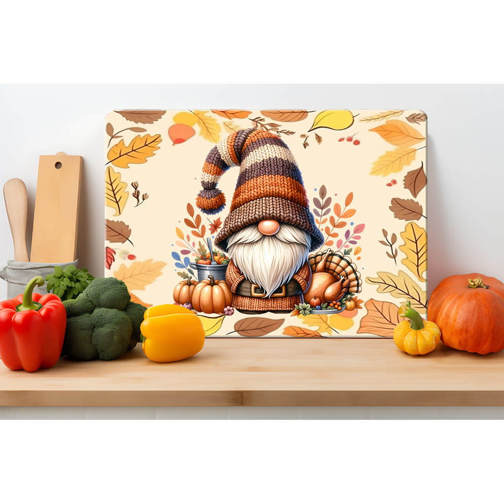 Autumn Thanksgiving Gnome Glass Serving Board