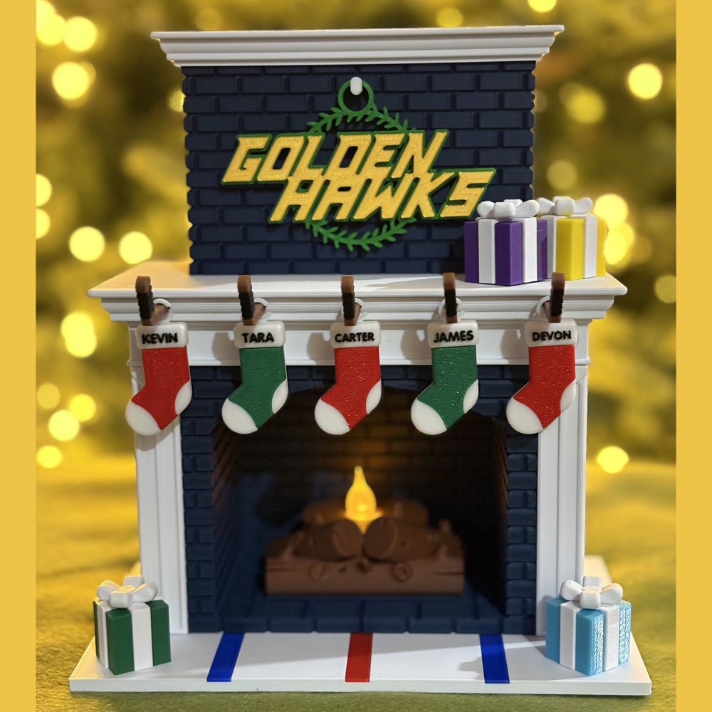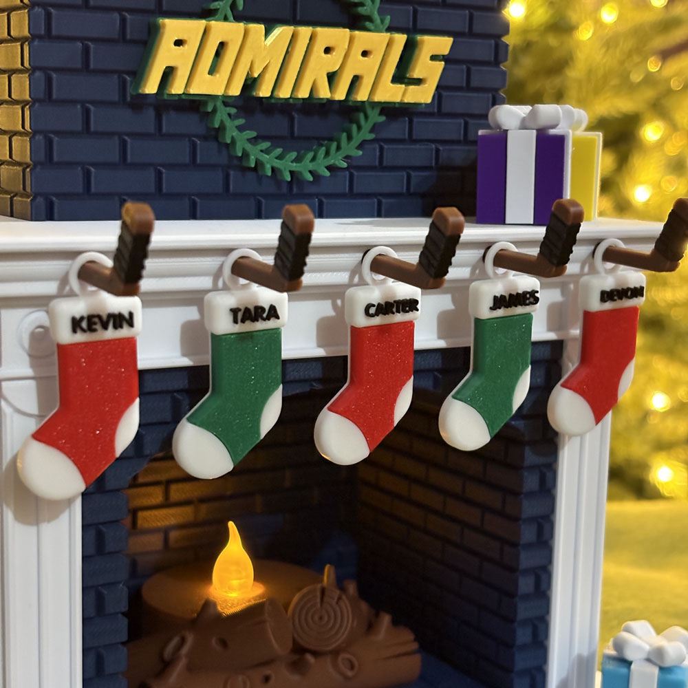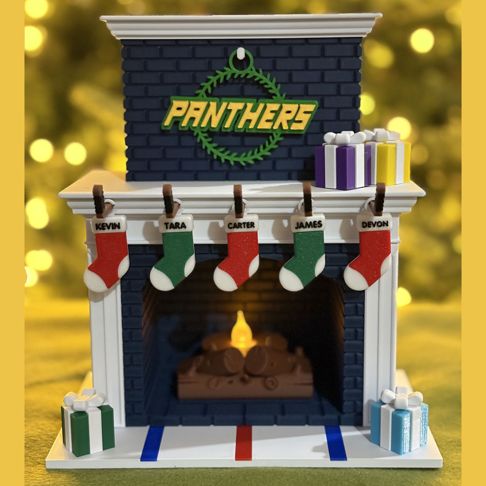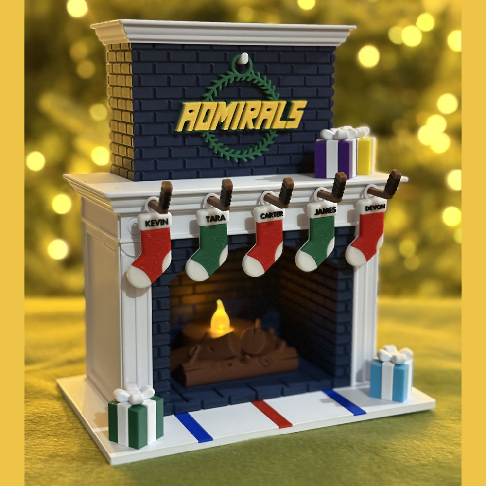 Festive Holiday Personalized Family Fireplace – Hockey Edition