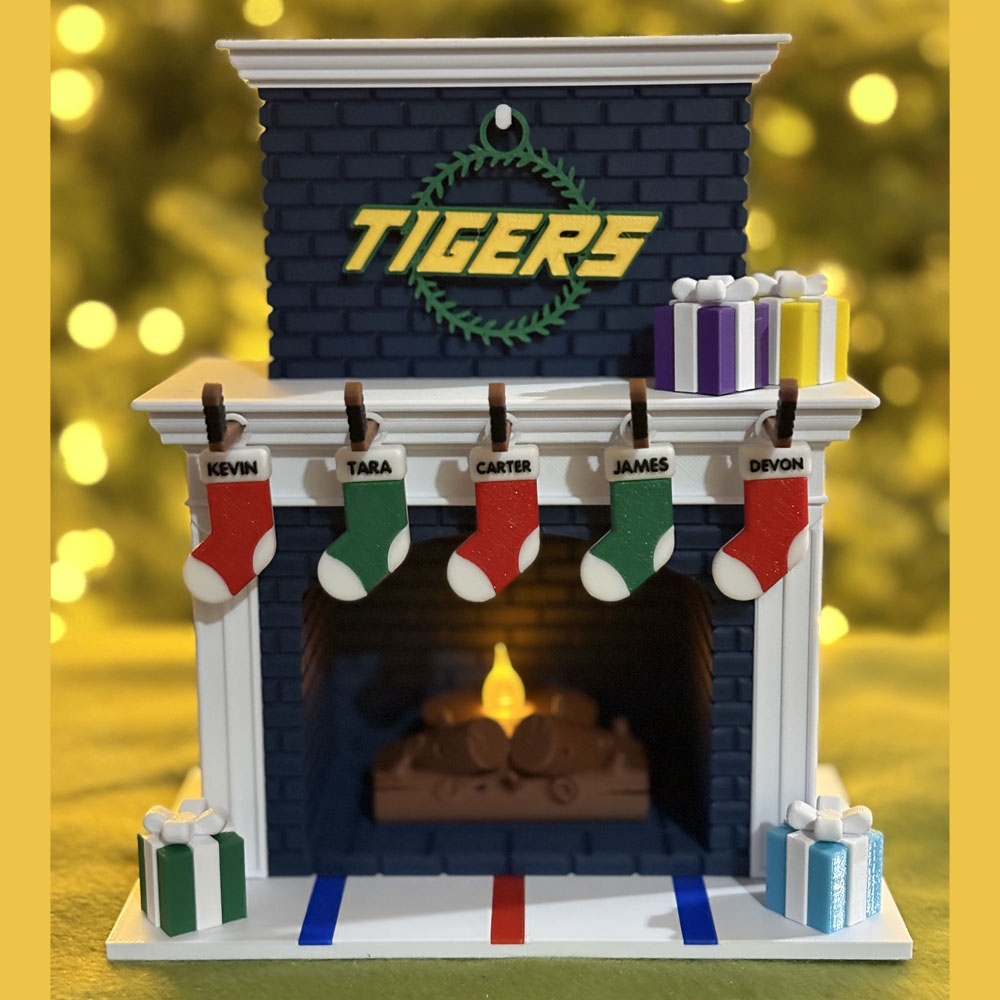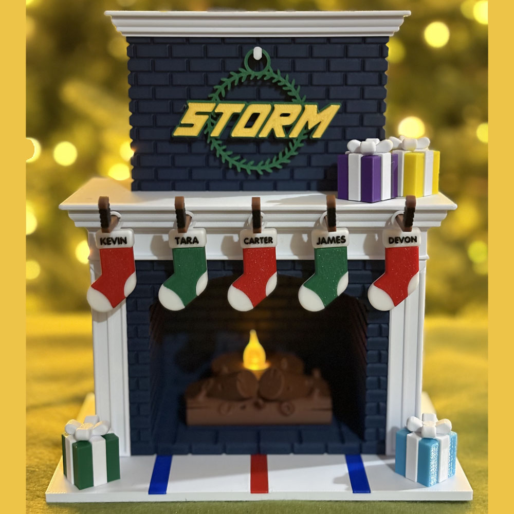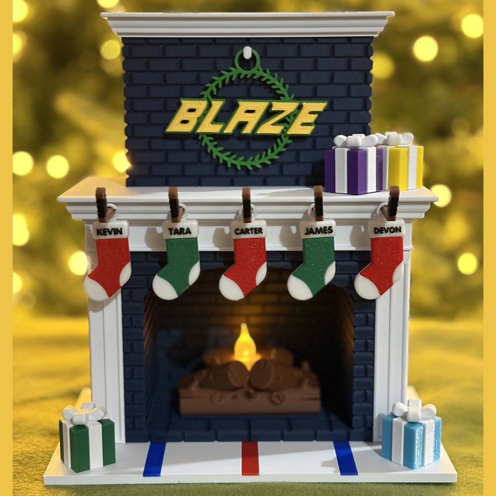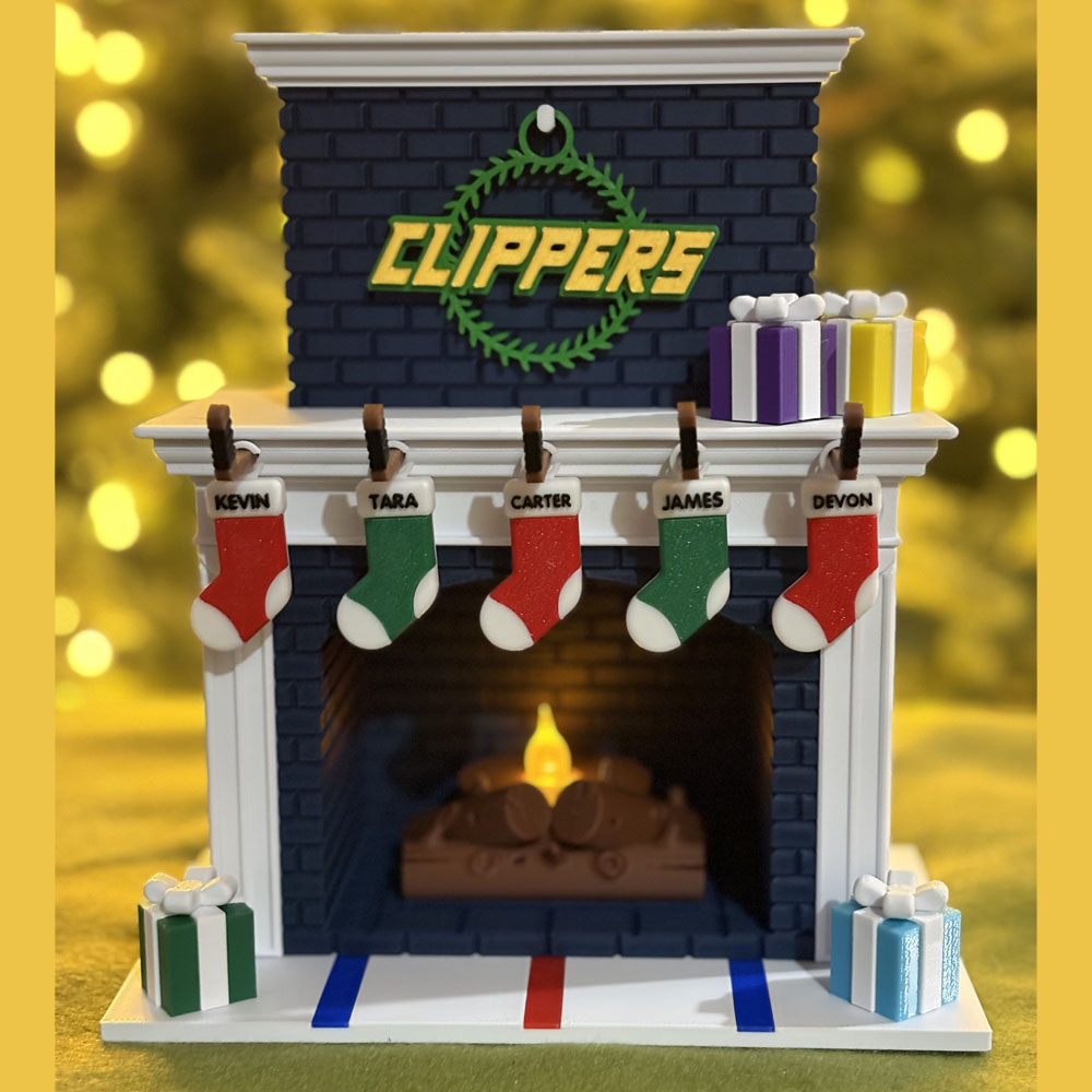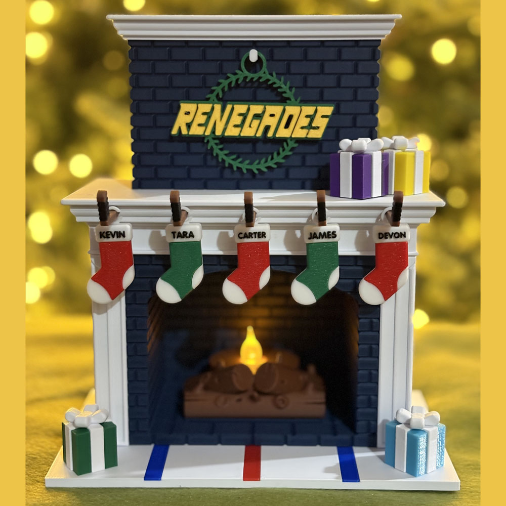 Festive Holiday Personalized Family Fireplace – Hockey Edition