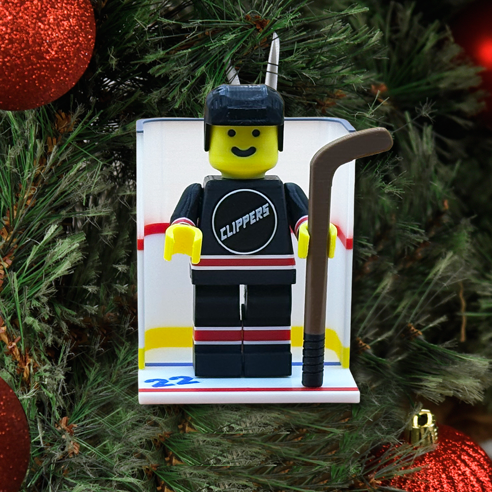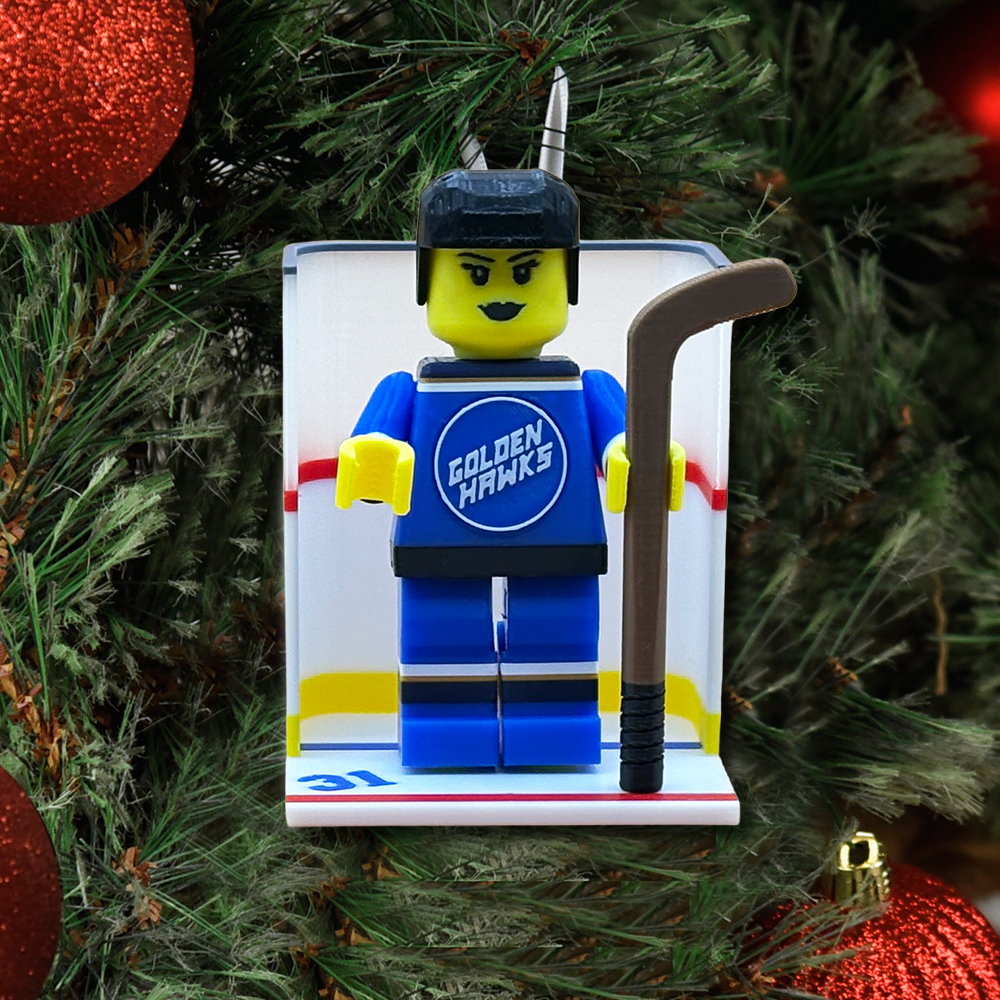 New for 2025! Commemorate the hockey season with a replica figurine of your player! Completely personalized with jersey/arms/socks design, team name & colours, player name, number & division. Coach version available also. Figurine can be ordered with or without ornament hanger loop attached to helmet. Don’t see your team? email sales@egdesignworks.com and we will design your figurine! GOALIE FIGURINE CAN BE FOUND HERE.