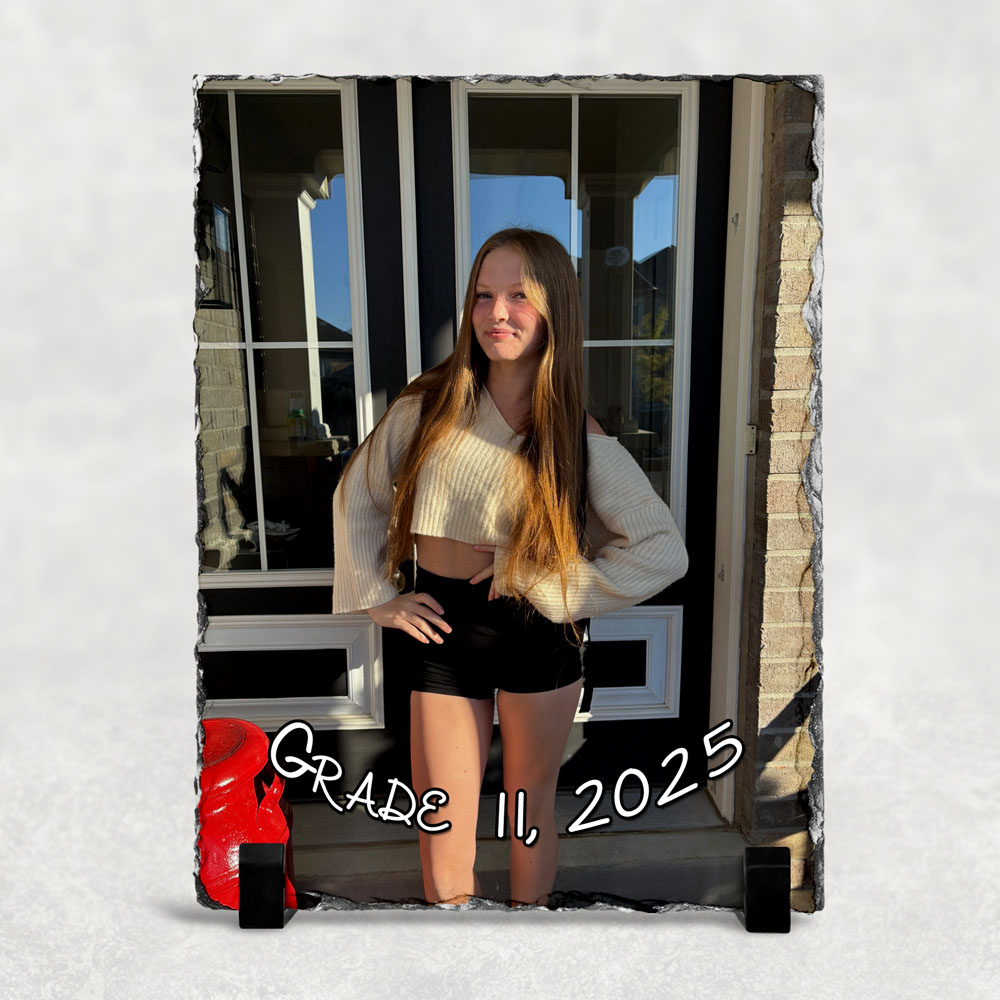 Showcase your cherished memories (First Day of School, Visit with Santa, Birthdays & more) in a unique and artistic way with our Rock Slate Photo Frames. These high-quality frames, available in both rectangle and heart shapes, provide the perfect canvas for vibrant and personalized memories. Edges are textured for a rustic, yet refined look. Ideal for gifting or home decor, they add a touch of elegance and creativity to any space.
